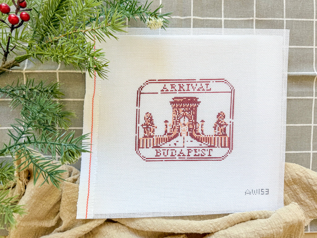 All canvases are stitch painted and come with a tapestry needle. This canvas does not come stitched or with fibers. Please allow 3-5 business days for in-stock canvases to ship.